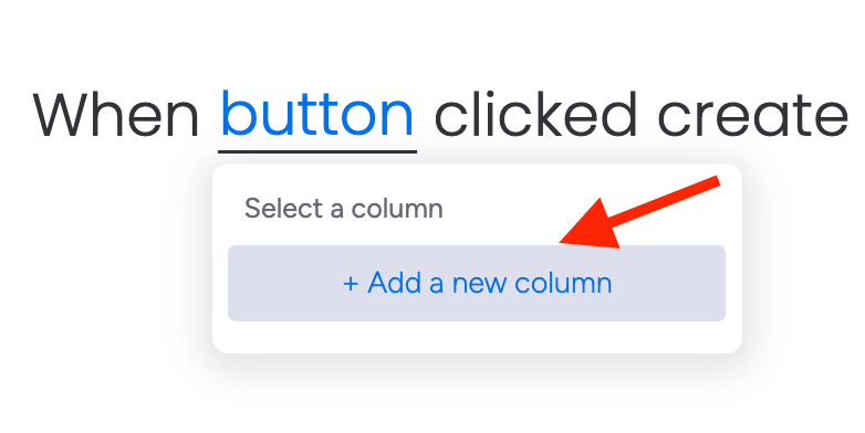 In order to use the button integration you need a column that contains a button. You can also create a new one on the fly while adding the integration.