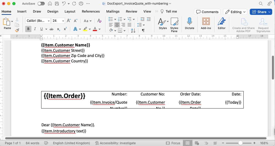 * **`{{Today}}`** -> Date of document creation (e.g. 24/12/2024)